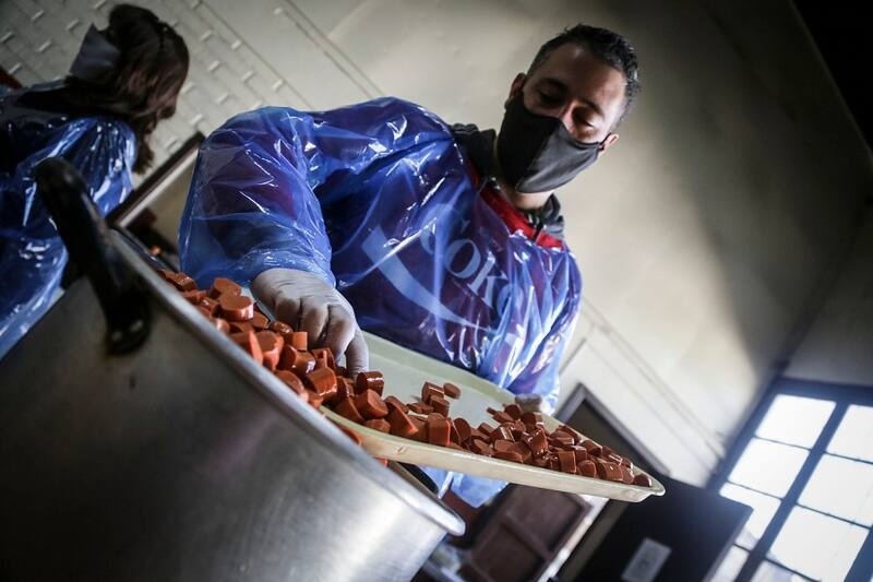 El calor de la cocina no para y los integrantes de la Olla común Padua continúan con el racionamiento que ahora llevarán a la gente del barrio. Es aquí donde se nota más la unión de los vecinos.