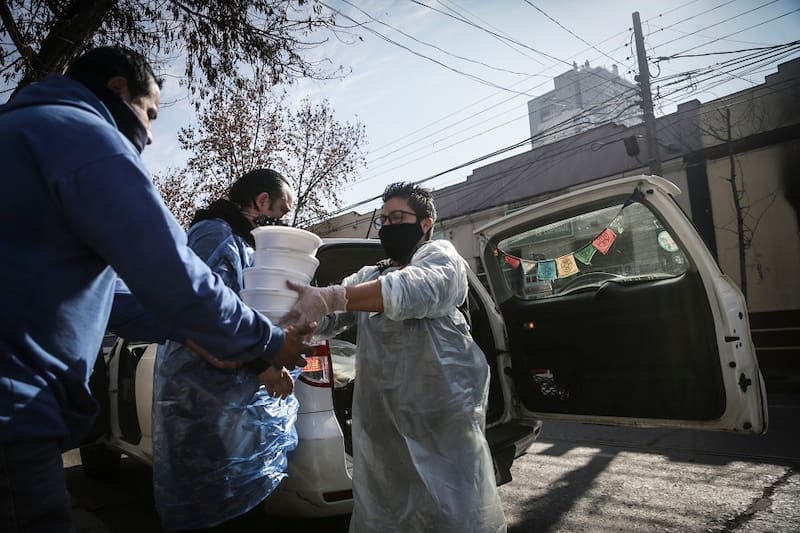 Al salir, una larga fila se observa por calle Carmen. El sacristán de la parroquia pide a cada comensal un papelito con sus datos para llevar la cuenta de las raciones entregadas. Claro está, menos de la mitad de los beneficiados cumple con la iniciativa, pero él, sin ningún reproche, entrega el pocillo blanco que hoy lleva porotos con riendas, o arroz con salsa y un trozo de pan para que todos puedan disfrutar de un plato caliente de comida, que en estos días, y para muchos, es difícil de conseguir.