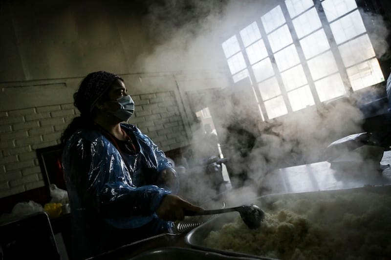 Al ingresar, uno se topa con un gran espacio donde en los años 80 funcionaba un comedor. Allí se alimentaba a cientos de niños de un colegio contiguo hoy extinto. Cuatro décadas después, ahí mismo un grupo de héroes se reúne para cocinar una olla común, autogestionada. Esta nace para solucionar un problema que hoy afecta a muchos chilenos y extranjeros residentes en nuestro país: el hambre.
