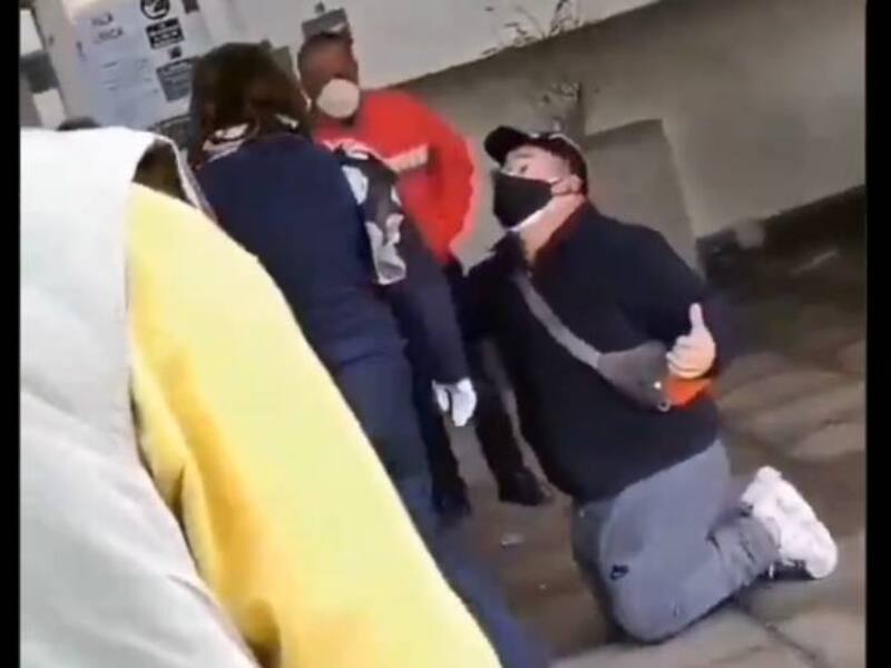 Ante la negación, el hombre recurrió a ponerse de rodillas y le suplicó a la funcionaria. "Señora... ¡por favor, se lo ruego, señorita!", rogó.