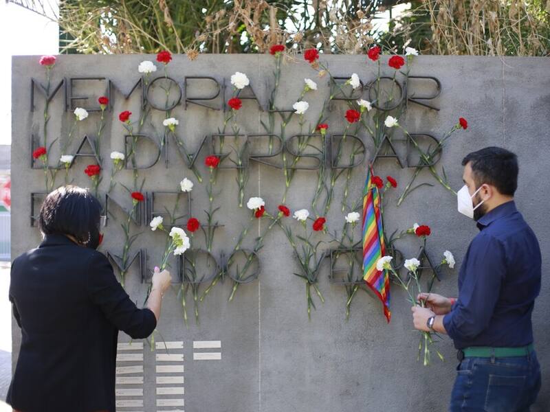 Los/as voceros/as del Movilh, Javiera Zúñiga y Óscar Rementería, instalaron en el Memorial de la Diversidad de manera permanente placas con los 11 nombres de las nuevas víctimas fatales de la homofobia y la transfobia, al tiempo que rindieron homenaje a las 54 personas LGBTI asesinadas en Chile por el mismo motivo, dejando una flor por cada una de ellas.