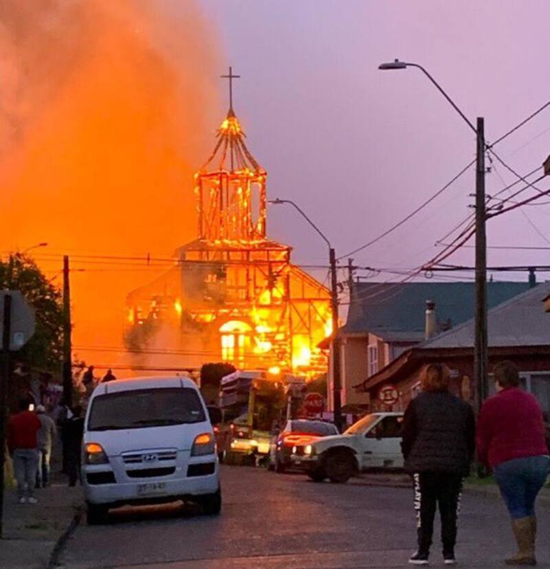 Con una terrible noticia madrugaron los habitantes de Chiloé, Región de los Lagos, al ver a la histórica Iglesia San Francisco de Ancud ubicada en calle Errázuriz consumida completamente por las llamas.