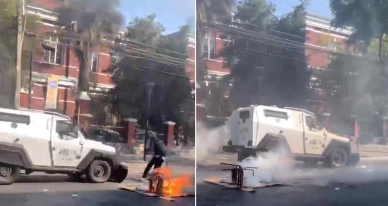 Un impactante registro da cuenta del momento exacto en que un carro blindado de Carabineros habría atropellado a un joven en medio de los incidentes que se producen en las inmediaciones del Liceo Barros Borgoño, en la comuna de Santiago.