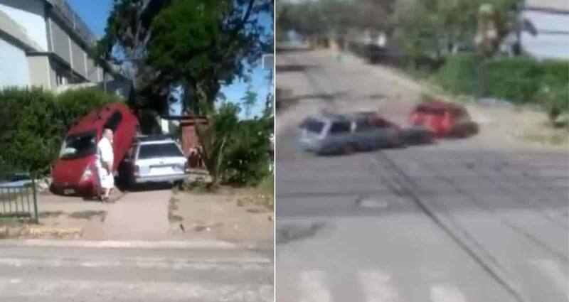 Un impactante video grabado por cámaras de vigilancia da cuenta del momento exacto en que un vehículo es chocado intencionalmente en la comuna de Estación Central.