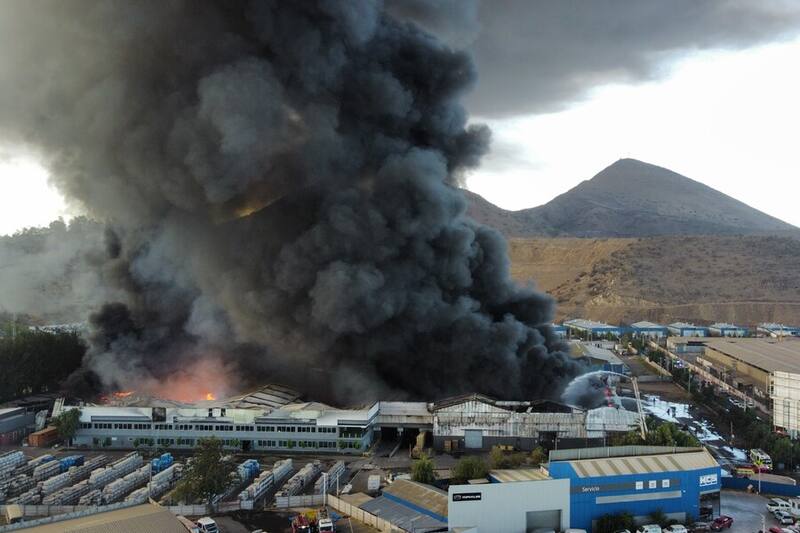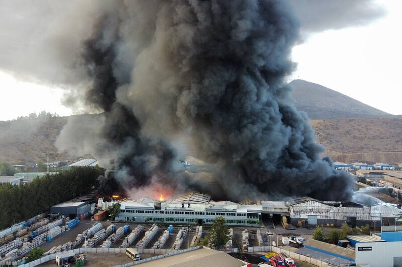 Las impactantes imágenes que deja el incendio en fábrica de pinturas de Quilicura