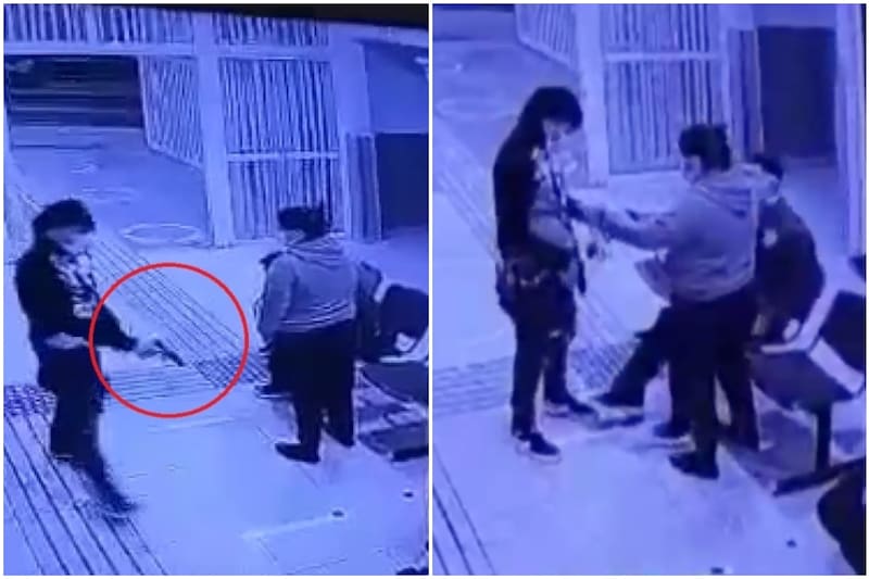 Posteriormente regresa al recinto sacando un arma mientras apuntaba a los usuarios robando una cartera de una mujer, los demás intentan alejarse del sujeto mientras abandona el SAPU de forma tranquila.