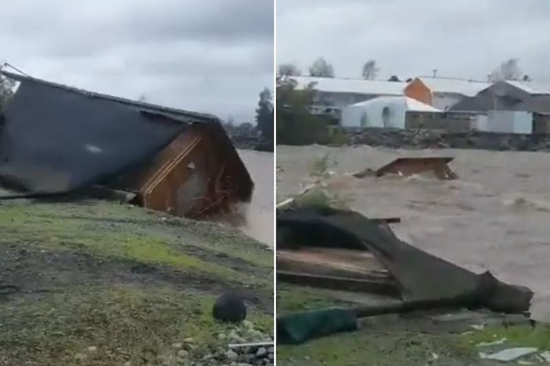 Una de las grabaciones fue publicada en la orilla del Río Chillán, cerca de la ruta que conduce a la comuna de Pinto, en la Precordillera. Allí el caudal se desbordó y arrasó con dos casas ubicadas en el callejón Santa Catalina.