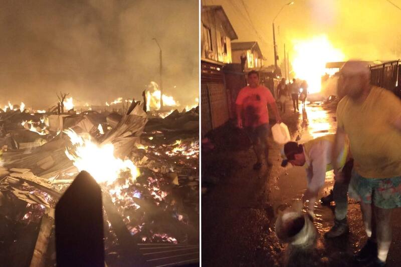El fuego se propagó desde plantaciones forestales y matorrales hacia la Población El Esfuerzo, donde las llamas arrasaron con decenas de casas, ante la desesperación de los vecinos.