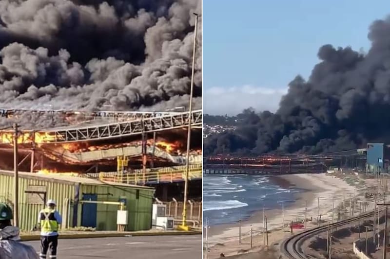 Según se reporta desde el lugar, más de 10 unidades de Bomberos concurrieron a controlar las llamas que consumían principalmente la huincha transportadora de uno de los muelles.