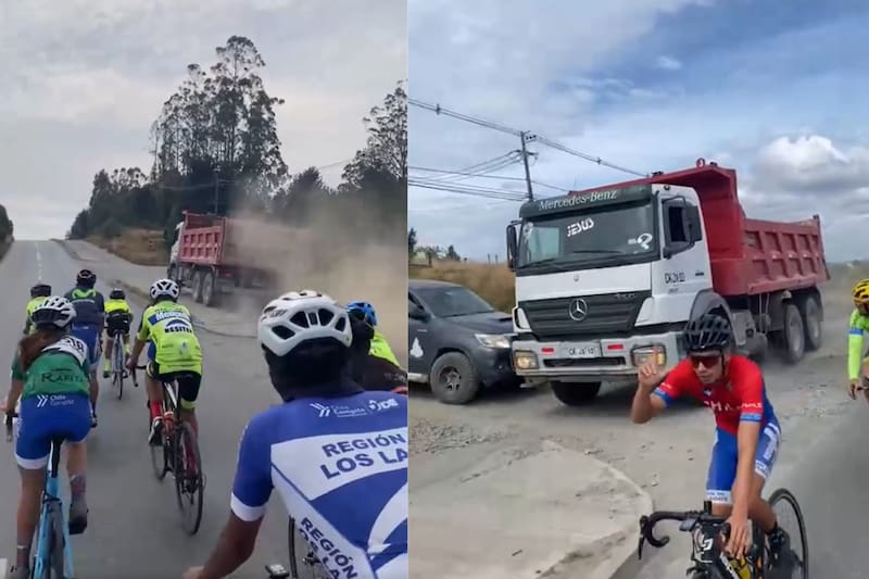 Un video en redes sociales muestra una imprudente y peligrosa maniobra de un conductor de camión, quien adelanta a un grupo de ciclistas por la vereda, mientras estos circulaban por la calle.