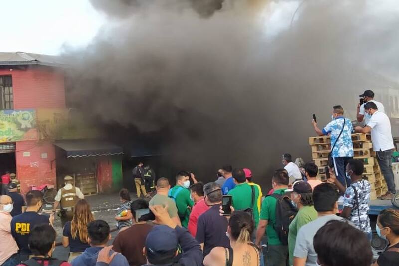 Durante la mañana de este lunes, un incendio afectó a tres locales comerciales ubicados en las cercanía de la Vega Central, en la comuna de Recoleta.