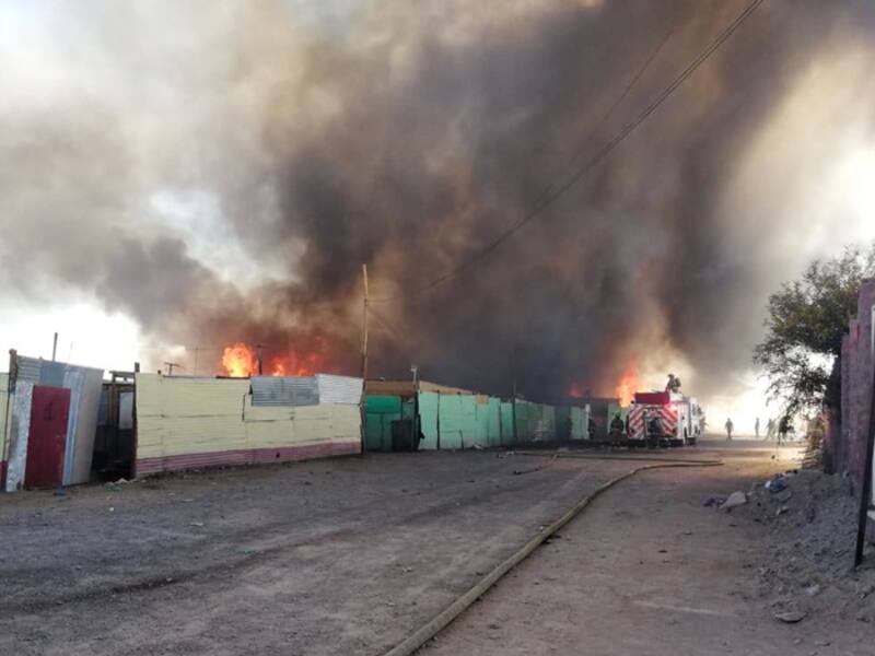 Incendio deja 100 casas destruidas y 400 damnificados en Calama