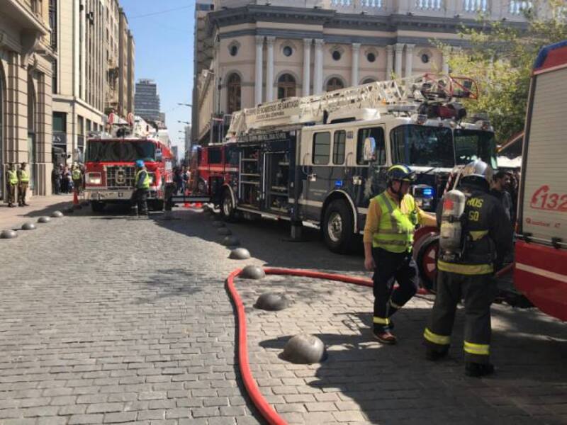 Según detalló el Cuerpo de Bomberos de Santiago, sus equipos ya están desplegados para socorrer la emergencia ocurrida en la instersección de calles Merced y Paseo Estado.