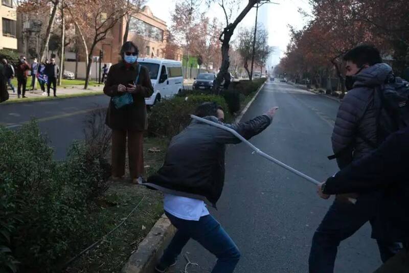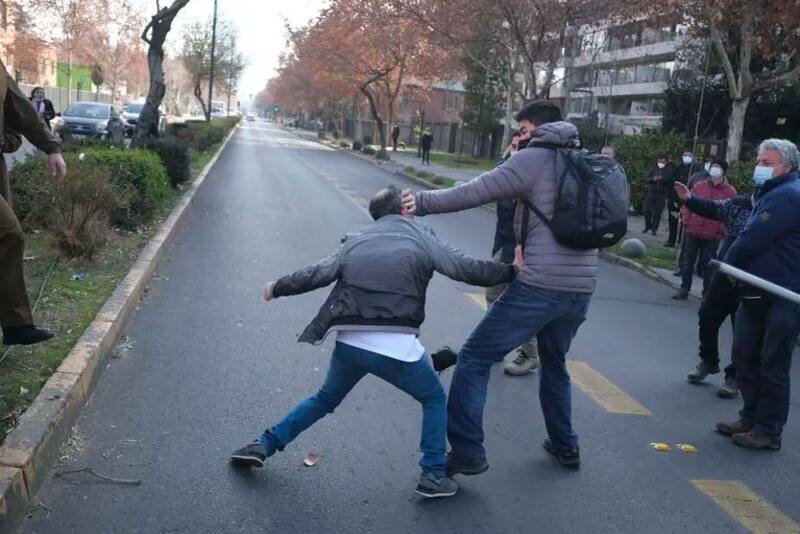 La mañana de este viernes se produjeron algunos enfrentamientos entre manifestantes en las afueras de la embajada cubana en nuestro país, situada en la comuna de Providencia.