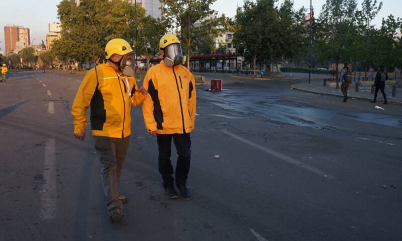 Durante estos días de manifestaciones sociales a lo largo de todo el país, el Instituto Nacional de Derechos Humanos (INDH) ha seguido de cerca los acontecimientos a través de sus propios "Chaquetas amarillas".