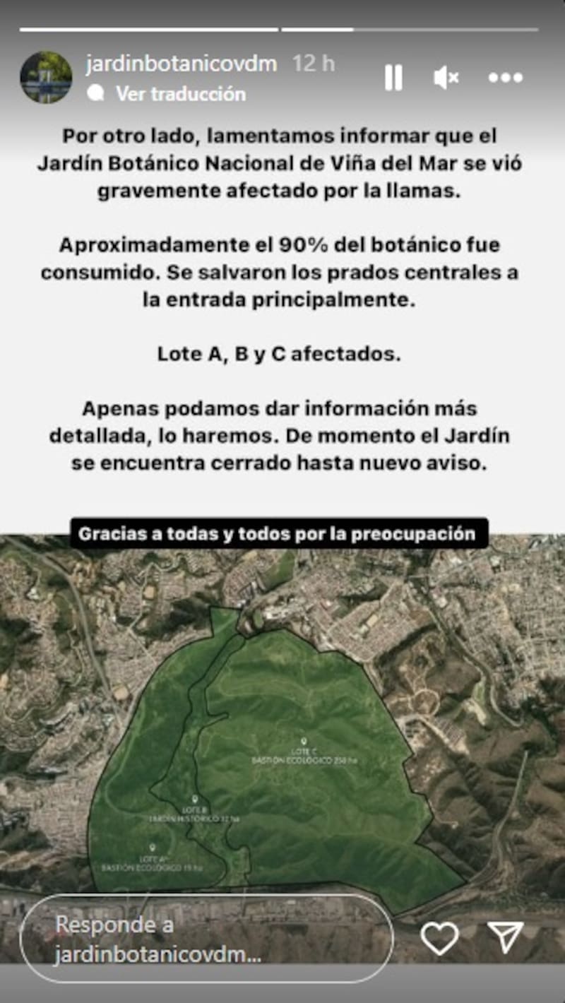 “Aproximadamente el 90% del botánico fue consumido. Se salvaron los prados centrales a la entrada principalmente. Lote A, B y C afectados”, revelaron.
