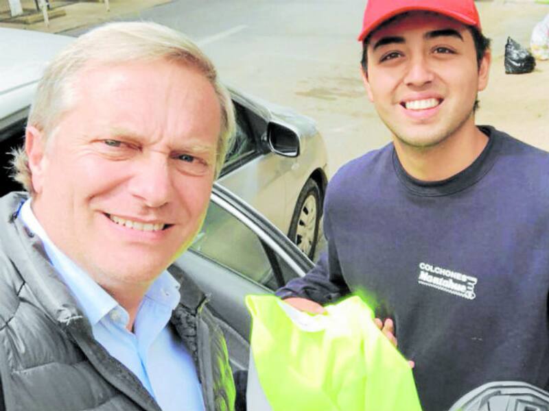 El ex candidato presidencial lo chocó por la izquierda, en Linderos, y tras el accidente le compró un casco y un chaleco reflectante.
