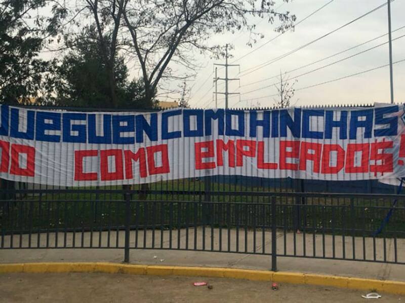 "Jueguen como hinchas, no como empleados", se leía en uno de los lienzos, en clara consigna a la mala racha que mantiene el elenco azul jugando en Macul, donde no consigue ganar hace 17 años.