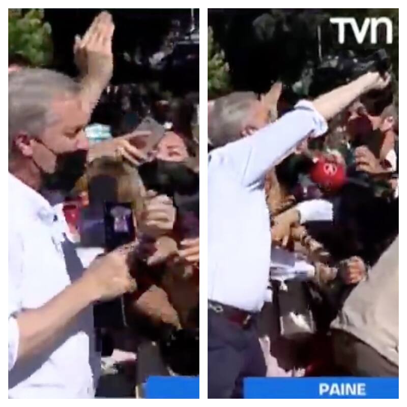 Cuando vio al reportero Gonzalo Feito del programa CQC detrás de una barrera, se acercó a él para saludarlo y, después de un apretón de manos, Kast le arrebató rápidamente su micrófono para simular una entrevista hacia el reportero.