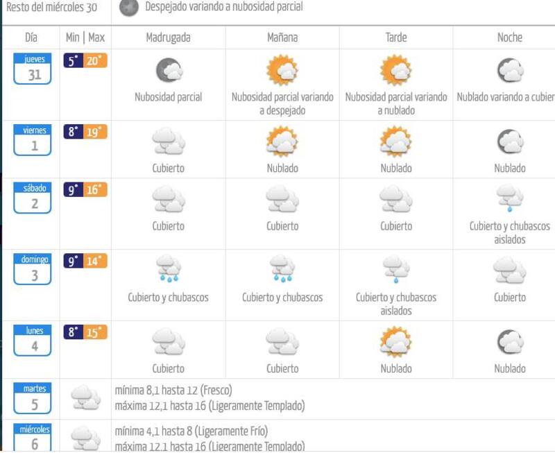 Por ahora, y de acuerdo a la Dirección Meteorológica, para este jueves la temperatura mínima será de 5º, mientras que la máxima superará los 20º.