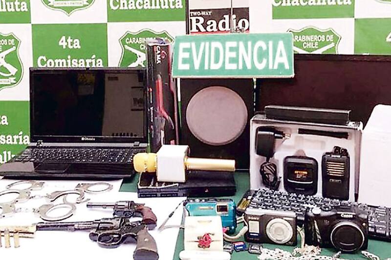"En la habitación de un domicilio habían dos armas de fuego, consistente en un revólver calibre 38 especial, el que mantenía municiones en su recámara, listo para ser percutado, y otro revólver calibre 22 corto. Además, se encontraron municiones percutadas y sin percutar, esposas de seguridad y especies productos de otros robos, entre computadores y cámaras fotográficas", agregó el mayor Cárdenas.