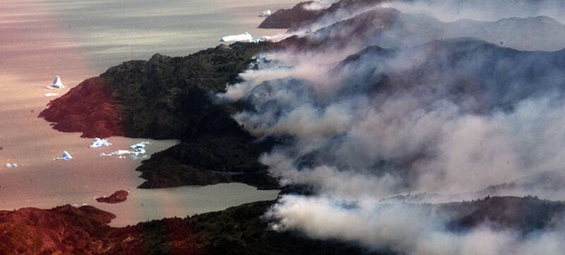 Brígido incendio tiene la patá en Torres del Paine. La Onemi mantiene Alerta Roja, pues el siniestro se ha comido más de 11 mil hectáreas de bosque nativo y matorral.