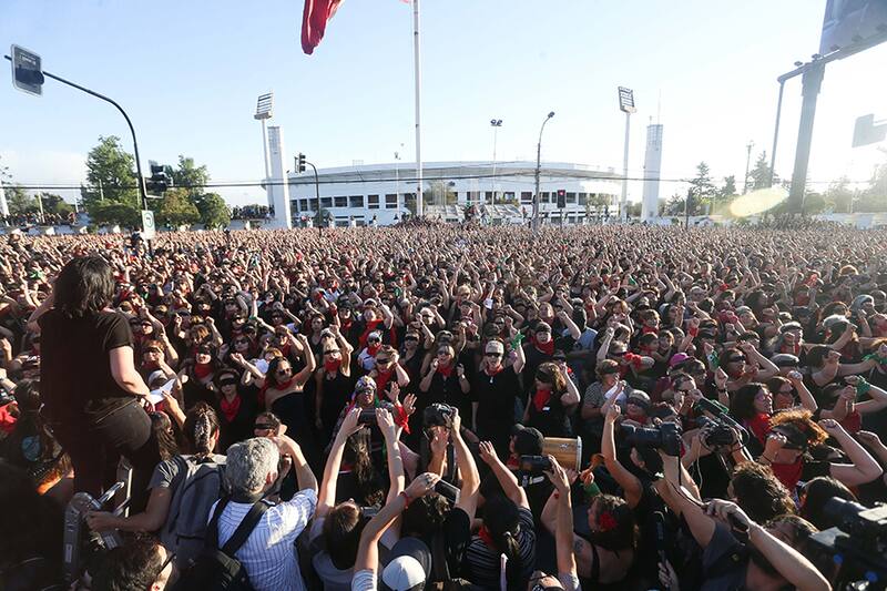 "Y la culpa no era mía, ni donde estaba, ni cómo vestía. El violador eras tú. El violador eres tú". Potente y sin miedo fue el cántico que resonó a voz en cuello en el frontis del Estadio Nacional en Ñuñoa, creado por Las Tesis.