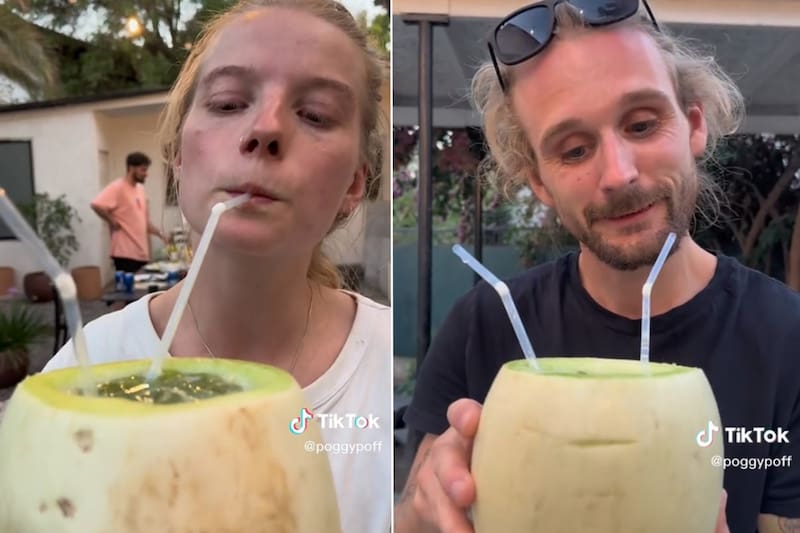 Fue el caso de dos jóvenes noruegos que, de paso por Chile, quisieron probar el famoso “Melvin” en Santiago y alucinaron. “Aquí tengo un melón con vino, un típico trago de Chile. Nunca lo he probado, así que, aquí vamos...”, comenzó la turista que, junto a su pareja, se encuentran recorriendo Sudamérica.