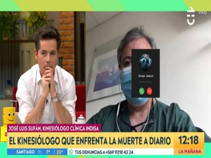 Y es que mientras Humberto Sichel y Macarena Pizarro entrevistaban al kinesiólogo José Luis Sufán, de la Clínica Indisa, una inesperada llamada por Skype interrumpió el diálogo.