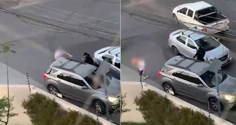 Un impactante registro da cuenta del violento portonazo que sufrió un hombre que viajaba junto a su nieta de 5 años en la comuna de La Florida.