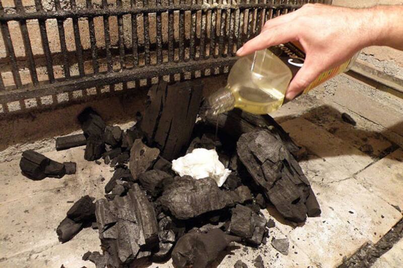 Armar un cerrito con el carbón dejando un espacio al centro, donde se pone un papel (como pelota o como cucurucho) con aceite de cocina. El aceite actúa como combustible y permite que encienda lentamente.