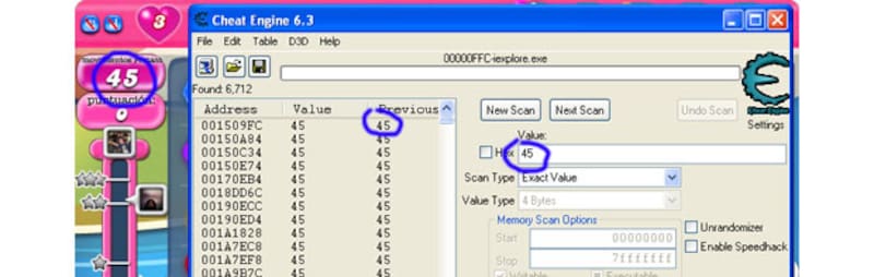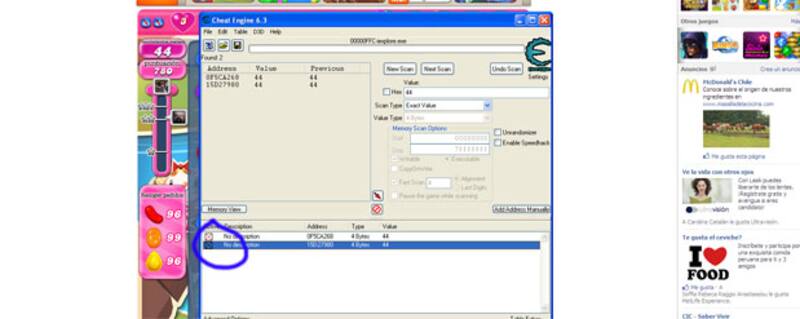 *El nuevo escaneo debe dejar sólo dos líneas en la zona izquierda donde está Address/Value/Previous. En caso de que aparezcan más, repite el paso anterior hasta que que queden el par.