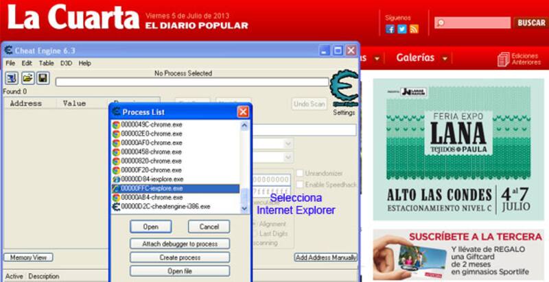 2- Abre el navegador Internet Explorer y ármate de paciencia... ¡para llevar a cabo la trampa! e ingresa al juego en la etapa que deseas pasar.