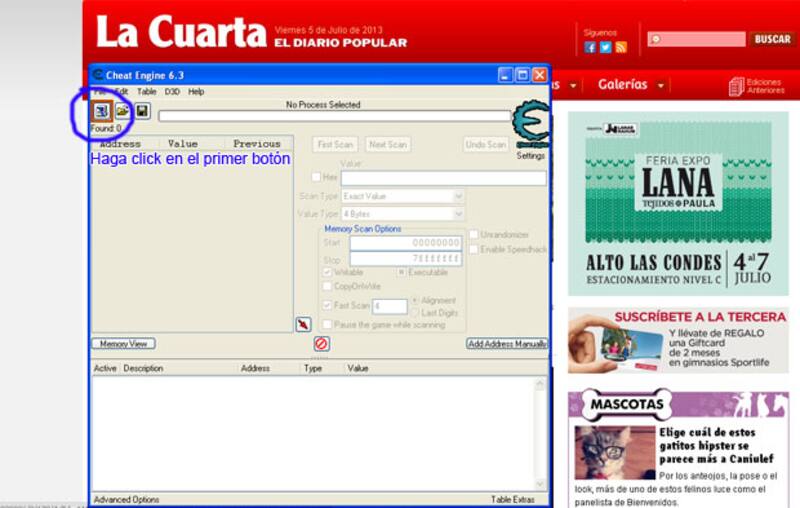 3- Ahora abre el programa Cheat Engine y en la parte superior izquierda selecciona el botón "Select a process to open".
