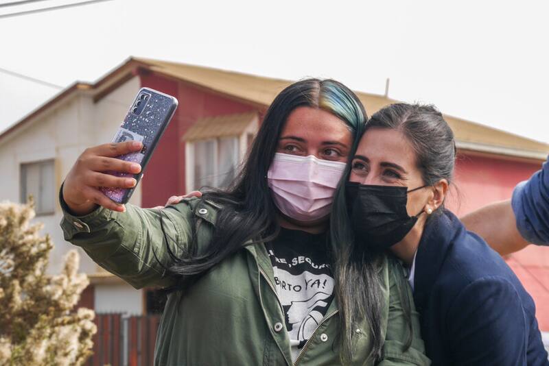 La alcaldesa, electa con un 38,5% de los votos, visitó la olla común que levantan las pobladoras y pobladores de la Parcela 11 en Forestal Alto, como su primera actividad luego de conocerse los resultados de las elecciones.