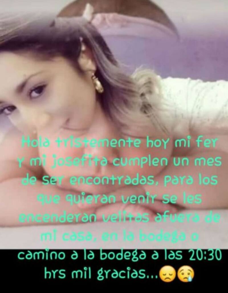 "Buenos días, hoy 24 se cumple un mes de a ver encontrado a mis niñas, fue la noche mas fría, había llovido todo el día y muchos estábamos viendo el partido. Fue una noticia que caló profundamente en mi corazón rompiendolo en mil pedazos y cada día que pasa duele mas".
