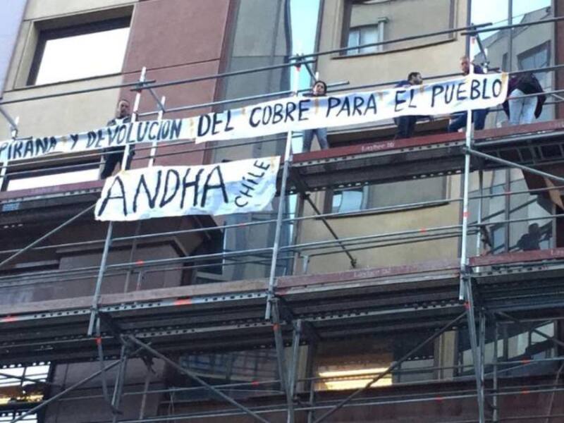 A través de Twitter, el partido hizo un llamado a la ciudadanía. "Andha Chile se toma andamios en oficinas de Codelco Huerfanos frente al 1269. "Carcel para Piraña y la devolución del cobre para el Pueblo". Levántate pueblo. Nos roban a diario y tú ahí súper tranquilo", expresaron.