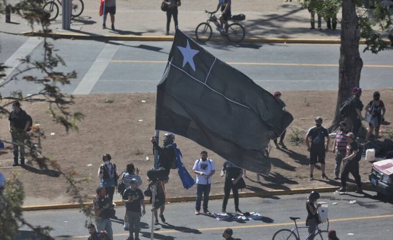 Además, se registra la instalación de barricadas en distintos puntos de la Alameda, así como el lanzamiento de fuegos artificiales.