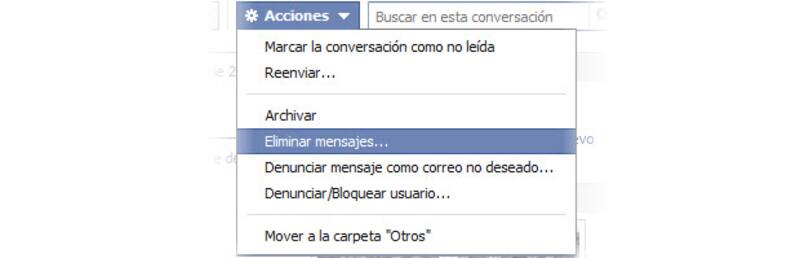 2.- Haga clic en el destinatario para desplegar la conversación y podrá entrar a un nuevo menú llamado "acciones", arriba, al lado del cuadro de búsqueda. Selecciona "eliminar mensajes".
