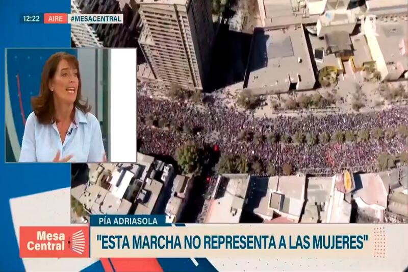 Mientras debatía en el panel, al mismo tiempo en que transmitían la marcha en vivo, Adriasola se anotó con un particular análisis de lo que estaba sucediendo en las calles, en donde señaló una frase que causó mucho revuelo en redes sociales, al referirse que la movilización no representaba "exactamente" a las mujeres.