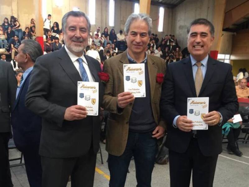 El presidente de Renovación Nacional, Mario Desbordes, el senador y ex candidato presidencial Alejandro Guillier y el presidente del Colegio de Profesores, Mario Aguilar, asistieron a la conmemoración de los 60 años del Liceo Polivalente Juan Gómez Millas, en la comuna de El Bosque, el mismo que antiguamente se llamaba A-109 y donde los tres cursaron la enseñanza media.