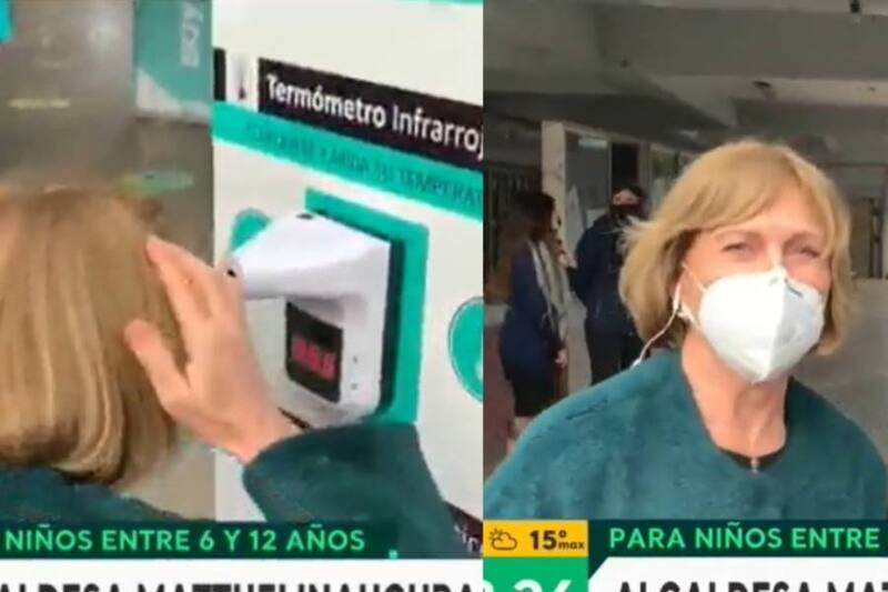 En el punto, la jefa comunal mostró las distintas medidas sanitarias que se implementaron para llevar a cabo la iniciativa. Incluso, se acercó a un termómetro infrarrojo fijado en el lugar, llevándose una sorpresa: "Oh, estoy con 37.6 (grados)", dijo la alcaldesa, quien no tardó en aclarar que no tenía fiebre.