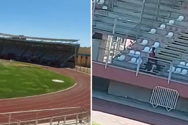 El momento fue grabado a distancia por testigos, y muestra el momento en que una mujer le realiza sexo oral al trabajador en el estadio La Granja.
