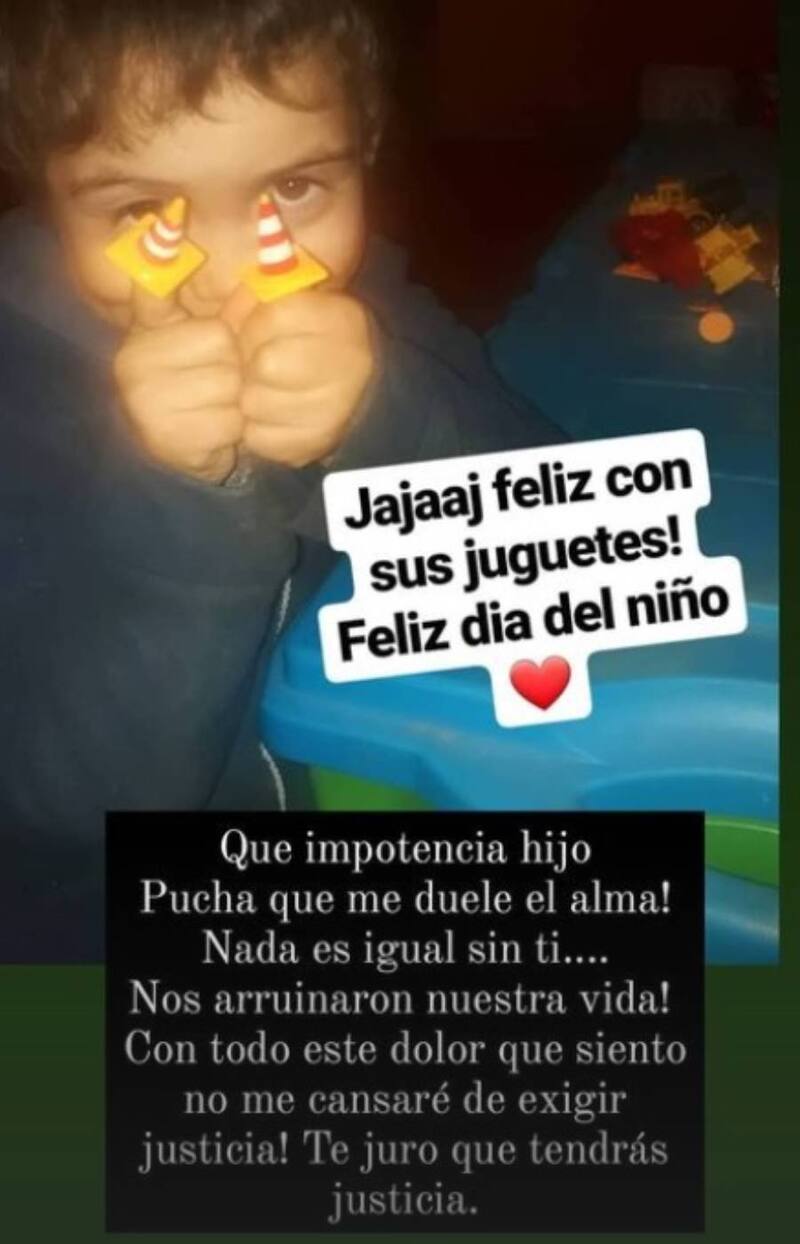Además, junto a una foto de Tomás celebrando un anterior Día del Niño, Estefanía escribió un desgarrador mensaje: "Qué impotencia, hijo. Pucha que me duele el alma. Nada es igual sin ti. Nos arruinaron nuestra vida. Con todo este dolor que siento no me cansaré de exigir justicia. Te juro que tendrás justicia.