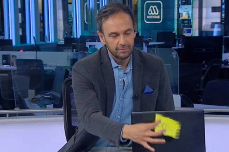 Periodista fue alertado por televidentes sobre un papel pegado en su computador.