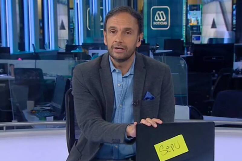 "Me escribe una persona y me dice 'Sepu, qué tienes en tu computador atrás'. Porque yo no sé lo que hay. ¿Qué es eso? ¿Qué dice eso?", se preguntó el periodista, a propósito de un mensaje pegado a su notebook.