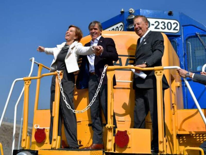 Los ministros inauguraron un nuevo tren de carga entre Santiago y San Antonio emulando la romántica escena de Rose y Jack.