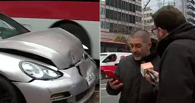 Se trataba un Porsche Panamera que, de acuerdo a imágenes registradas por cámaras de vigilancia, protagonizó un accidente horas antes. En medio del despacho, el auto de lujo fue subido a una grúa para ser transportado a los corrales.