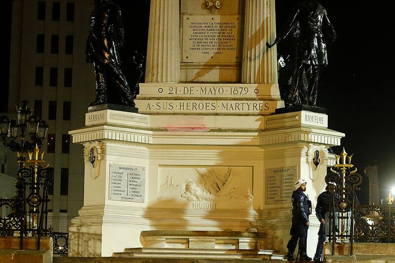 "El Ministerio de Defensa Nacional condena enérgicamente la acción de estos delincuentes en contra de símbolos y monumentos de la Patria que dan cuenta de nuestra historia republicana", explicó a través de un comunicado el ministerio.