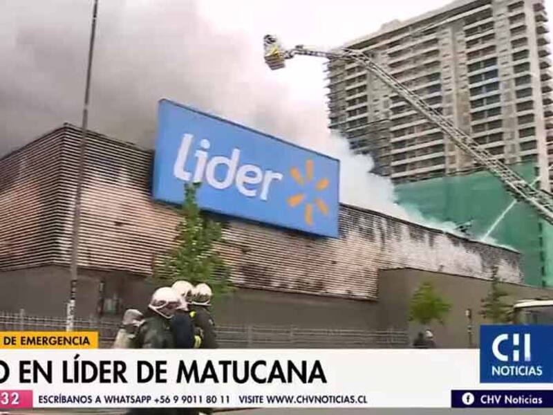 En Santiago, en tanto, voluntarios de Bomberos trabajan para intentar controlar el incendio en el supermercado de calle Matucana.